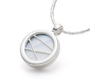 Kette mit Anhänger mit zwei Einlegern, zusätzlich jeweils ein Einleger Lava-Sand, Koralle, Spiral-light, Muschel-Bambus, Meeresauge, Spider-Shell sowie dem Einleger Sun aus 925 Silber.