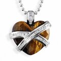 Märchenhafter Schmuck von Heartbreaker: Kette aus 925 Silber mit facettiertem Herz aus Tigerauge und Zirkonia