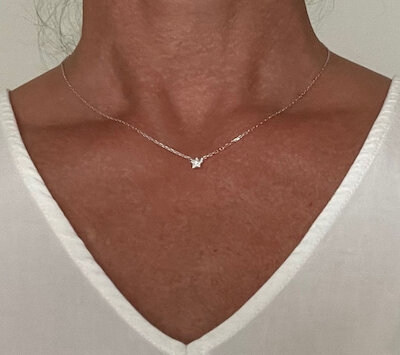 Edel glitzerndes Collier in Weißgold mit einem kleinen, funkelnden Diamant-Stern.