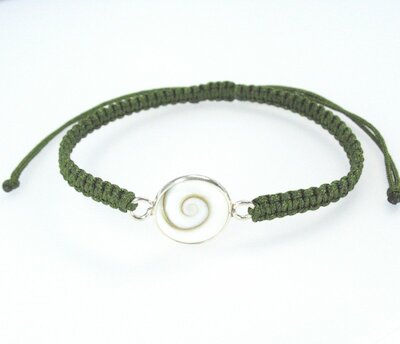 Dieses schöne Makramee-Armband aus Nylongarn ist fein und sehr stabil gearbeitet. In der Mitte befindet sich eine echtes Shiva Meeresauge, gefasst in 925 Silber. Das Armband ist mit einem verstellbaren Zugknoten versehen.
