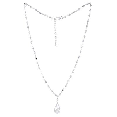 Muja Juma ist feiner, handgefertigter Designer-Schmuck aus den Niederlanden mit echten Edelsteinen: Kette aus 925 Silber, mit facettierten, grauen Labradorit-Perlen und einem handwerklichen Tropfen-Anhänger. Der Tropfen ist 17mm lang. Diese Kette eignet sich auch zum Kombinieren mit kürzeren oder längeren Ketten im Layering-Stil.