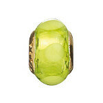 "Petite" Bead aus 925ger Sterlingsilber, vergoldet, mit hellgrünem Muranoglas mit Punkten