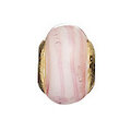"Petite" Bead aus 925ger Sterlingsilber, vergoldet, mit rosafarbend gestreiftem Muranoglas