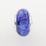 "Petite" Bead aus 925ger Sterlingsilber, vergoldet, mit türkisblauem Muranoglas mit Blumen